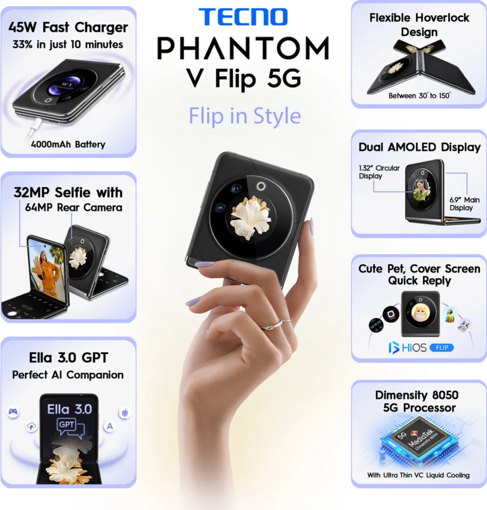 #3. Tecno Phantom V Flip 2 — ₹54,999 | Best Display on a Budget Foldable