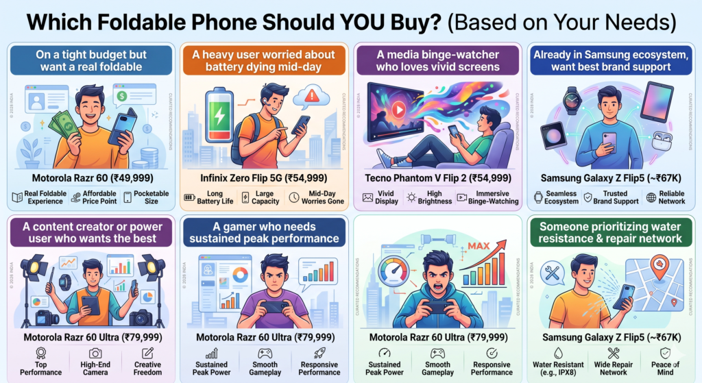 | A heavy user worried about battery dying mid-day | Infinix Zero Flip 5G (₹54,999) |