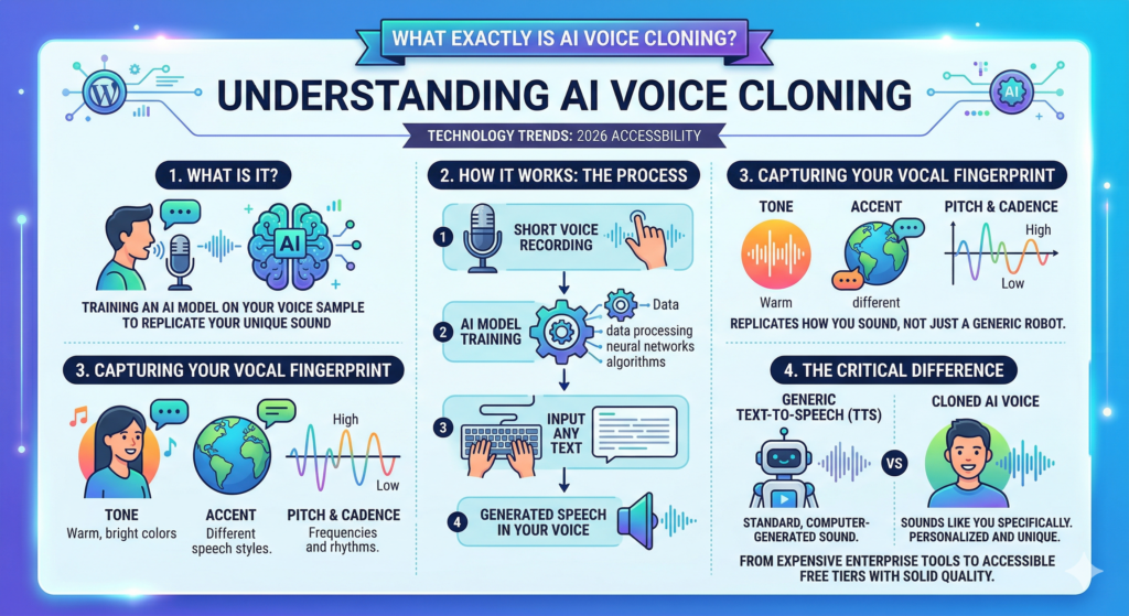 Think of it like teaching a machine to “become” your voice. In 2026, this technology has become surprisingly accessible. Tools that were once locked behind expensive enterprise plans are now offering free tiers with solid quality.